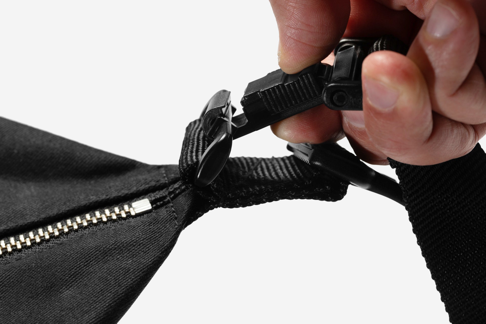 - 1 Außentasche mit den typischen 2 Reißverschlüssen